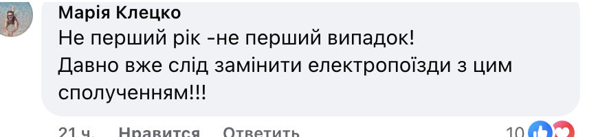 • Не перший рік — не перший випадок! Давно вже слід замінити електропоїзди з цим сполученням!!!
