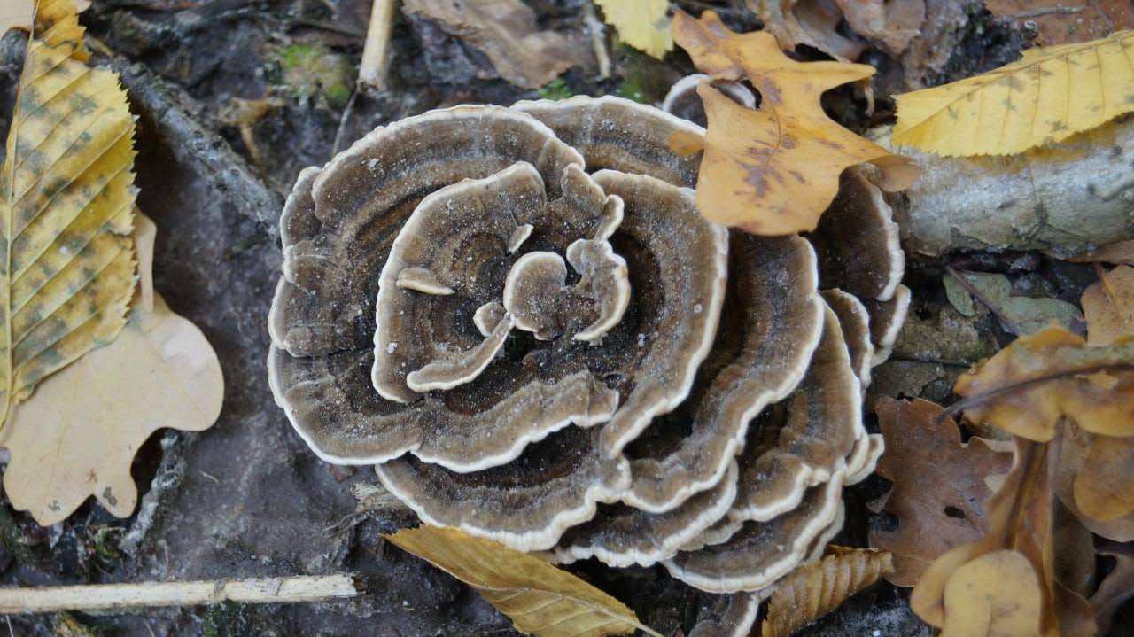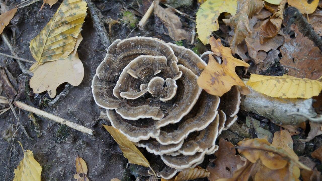 Фото гриба траметес різнобарвний (Trametes versicolor), що знайшли в Тернопільській області, опублікував Telegram-канал "Мій Тернопіль". Це — одним із найпоширеніших і найбільш вивчених грибів-трутовиків у світі.