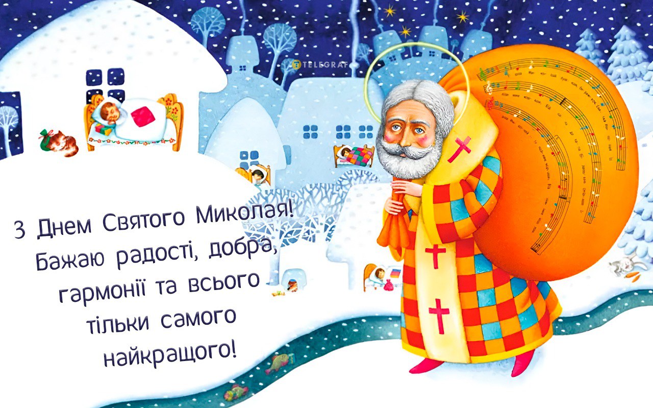 Вітаю з Миколаєм! Нехай Чудотворець принесе тобі мішок щастя, відро здоров’я та повні кишені удачі!