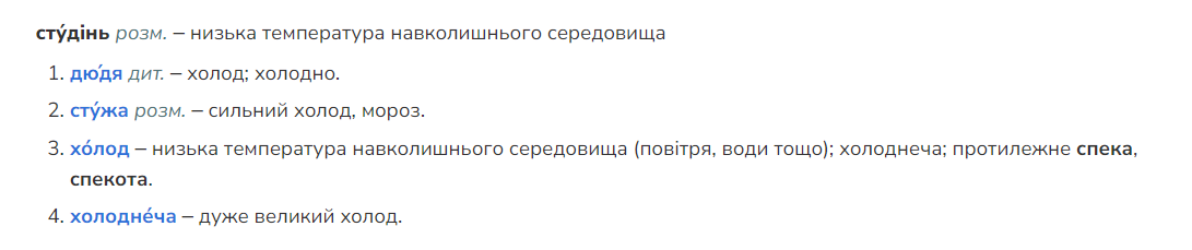 Слово "студінь" має кілька близьких родичів у мові. Це "стужа", "холоднеча" та звичний нам "холод". Але саме студінь найточніше передає відчуття того морозу, що проймає до кісток, коли термометр показує мінус 20 і нижче.
