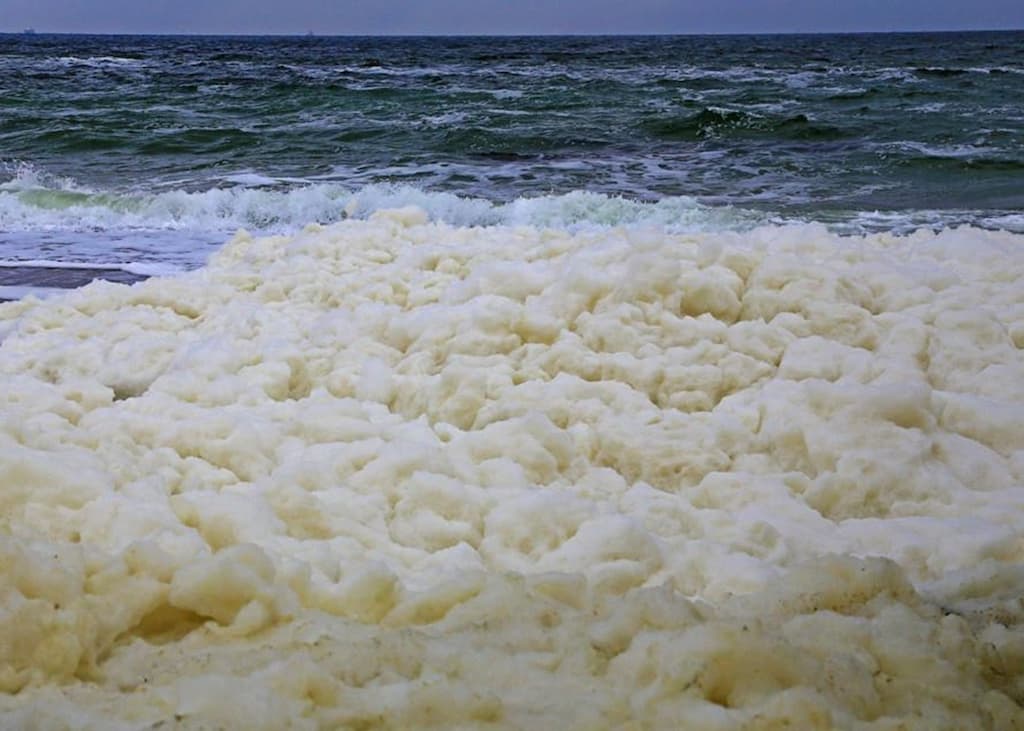 За словами вчених, піна з’являється через накопичення водоростей, морської солі, відходів. Усе разом в поєднанні зі штормовим вітром, який виступає як міксер, перетворюється на піну. Адже хвилі збиваються у густу піну, яка довго не осідає. Утворена маса не небезпечна для людей чи навколишнього середовища. Але вона має високу концентрацію солі тому після висихання залишає білі сліди.