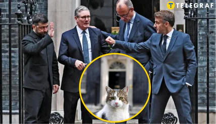 У момент, коли прем’єр-міністр Великої Британії Кір Стармер та Президент України Володимир Зеленський підходили до входу в резиденцію, Ларрі демонстративно зістрибнув з ґанку і побіг у своїх справах, замість того, щоб привітати високопоставлених гостей. Цей кумедний момент викликав посмішки у присутніх.