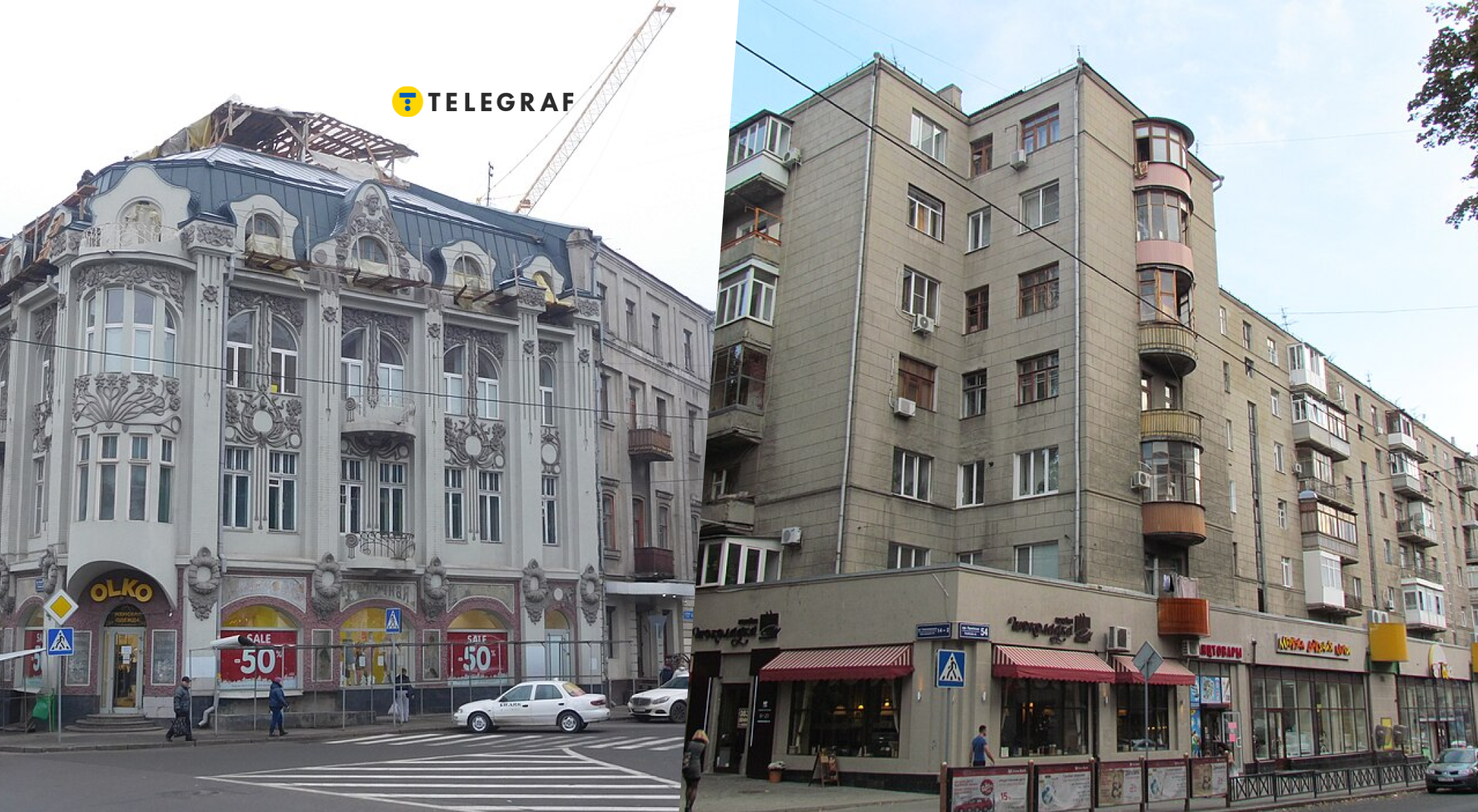 На початку вулиці стояв Миколаївський собор (1896 році) у неовізантійському стилі, знесений у 1930 році через прокладку трамвайної лінії. Колишній будинок №1 — готель "Метрополь" — зруйнований під час війни 1941–1945 рр. На його місці у 1950-х споруджено житловий будинок, що з’єднав забудову вулиці Григорія Сковороди та майдану Конституції.