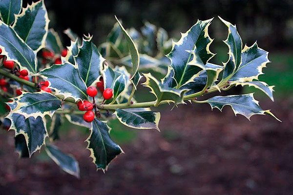 Падуб — це вічнозелене дерево або чагарник, який ніби спеціально створений для зимового саду. У нього густа крона, прикрашена блискучим темно-зеленим листям з гострими зубцями по краях, які залишаються завжди зеленими.