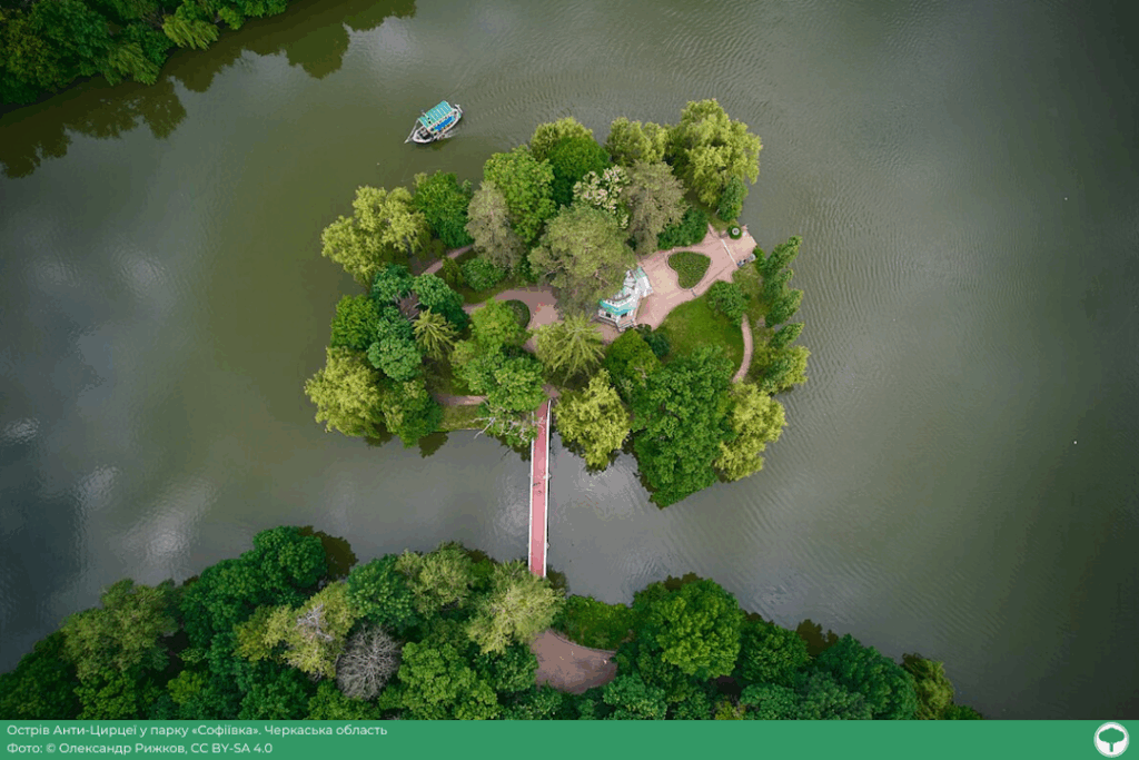 У парку "Софіївка" фотограф побачив з повітря острів із виразною геометрією і дочекався, коли кораблик стане у потрібну точку композиції.