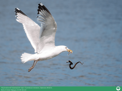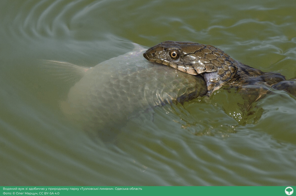 У НПП "Тузловські лимани" зроблені ефектні знімки водяних вужів та птахів. На озері Малий Сасик фотограф побачив справжній "вужачий шведський стіл", коли десятки вужів випливали з рибою в зубах, зокрема з великим карасем, який залишився тільки на фото.