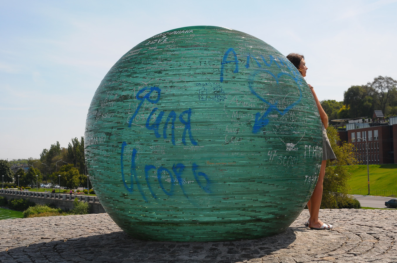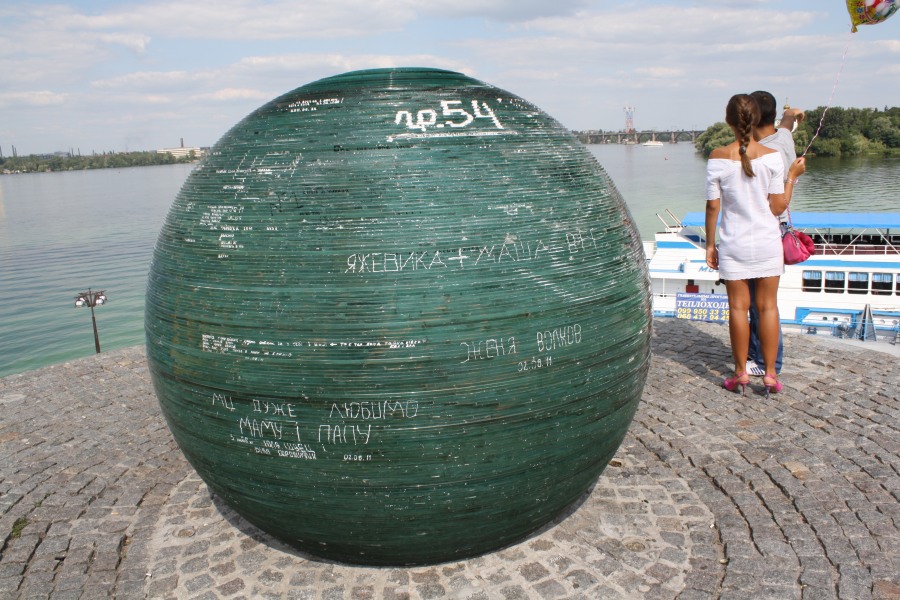 Незвичайний мистецький об'єкт був відкритий у Дніпрі у 2016 році. Це велика куля з зеленого скла, вагою 2 тонни, яка знаходиться на 7-метровому постаменті зі сходинок у формі піраміди. Міські легенди говорять, що, бажання, загадані біля цієї кулі, обов’язково збуваються.