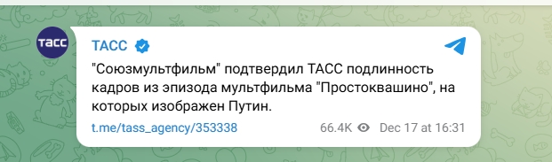 В мережі з'явився кадр з мультсеріалу "Простоквашино" з Володимиром Путіним. На студії "Союзмультфільм" заявляють, що це має стати інструментом "м'якої сили для просування Росії та її культури".