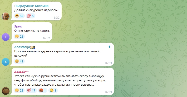 Цей кадр викликав хвилю емоцій, проте, напевно, не таких, на які розраховували творці мультфільму. Користувачі в мережі, уважно вивчивши кадр, зробили висновок, що Простоквашино — село карликів, оскільки Путін там найвищий.