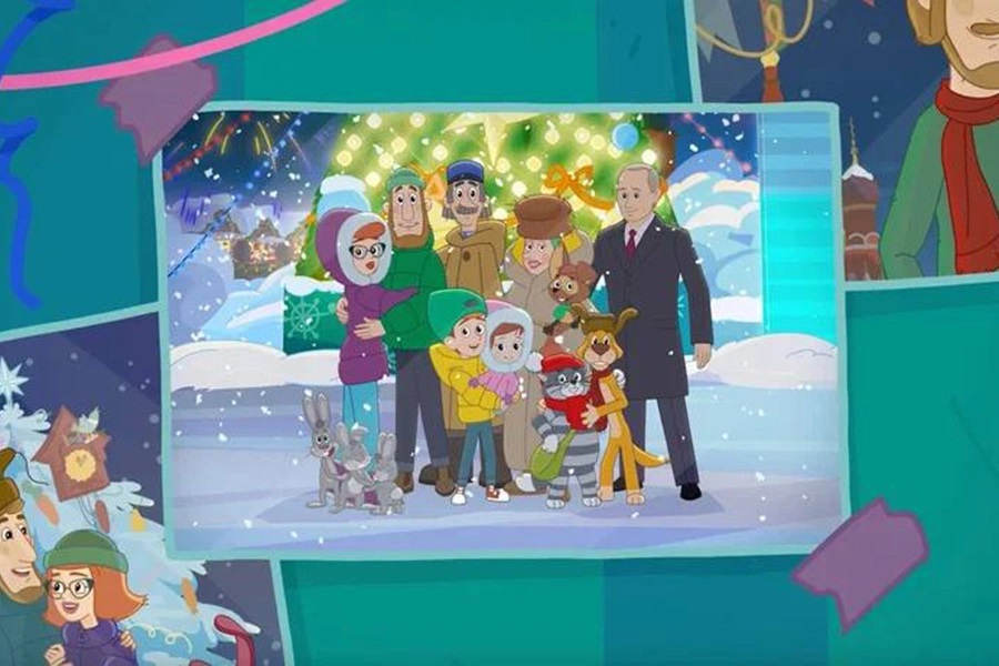На оприлюдненому кадрі поруч з дядьком Федором, листоношею Пєчкіним, котом Матроскіним, собакою Шаріком та іншими героями стоїть і Путін, який різко помолодшав та додав у зрості.