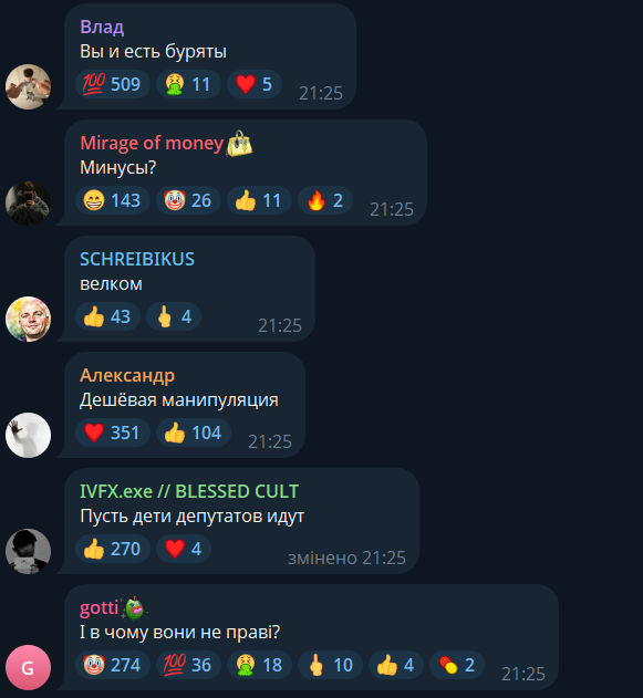 Зауважимо, що багато українців сприйняли такий "мотивуючий" плакат негативно та порівняли самих працівників ТЦК з бурятами, а також запропонували повісити таку рекламу у Верховній Раді.