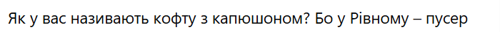 На Рівненщині кофту з капюшоном називають пусер