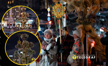 Українці поколіннями встановлювали цей святковий атрибут на знак добробуту, врожаю та злагоди в родині. Кореспондент "Телеграфа" Ян Доброносов показав, який вигляд має цьогорічний дідух та як кияни святкують Святвечір у центрі столиці.