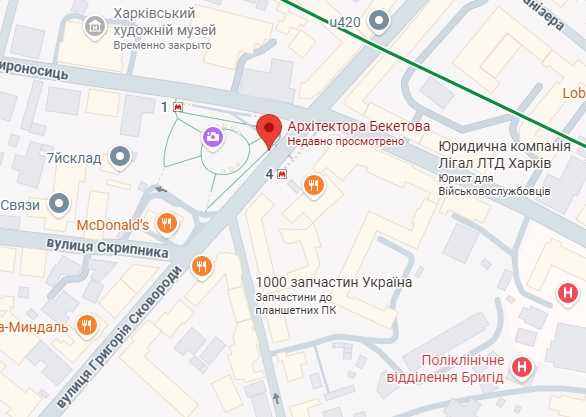 Карта місця розташування Пам'ятника закоханим в Харкові