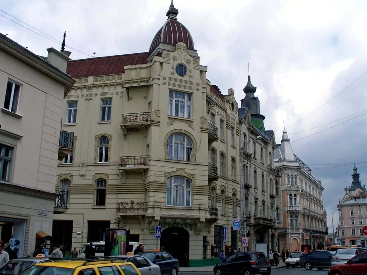 Будинок № 1, на розі з площею Галицькою, збудували у 1872 році для Галицького іпотечного банку. У різний час тут добудовували флігелі та поверхи. Наприкінці 1930-х років у будівлі відкрили кінотеатр "Європа", який після війни працював як кінотеатр "Україна" до 2006 року.