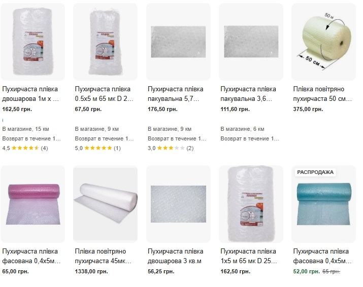 В Україні пухирчату плівку можна легко купити в будівельних магазинах магазинах або онлайн. ЇЇ ціна залежить від щільності, розміру бульбашок та іншого і не перевищує кількох сотень гривень за метр.