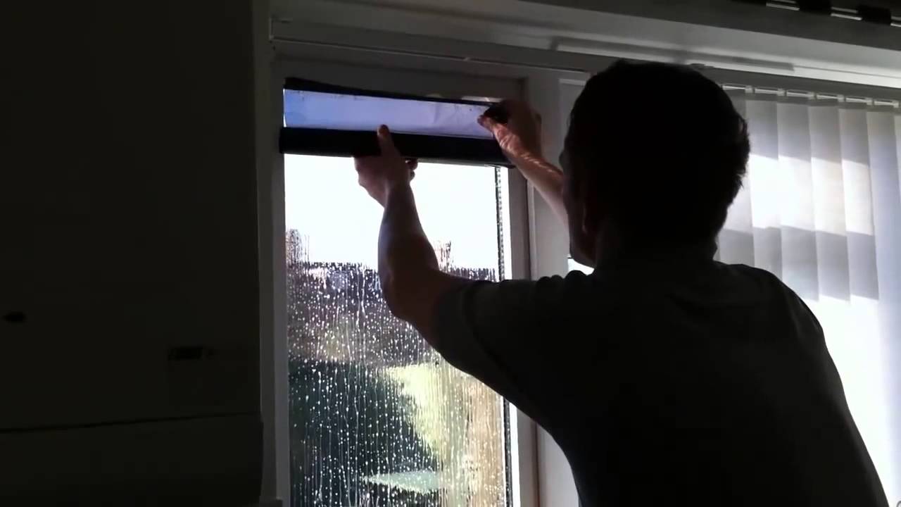 Поміряти розмір вікон та обрізати плівку. Вона повинна легко розміщуватись в рамі, щільно прилягаючи до скла. Обприскати водою вікно та притискнути плівку до вікна так, щоб пухирці торкалися скла, а плоска сторона була направлена всередину приміщення.