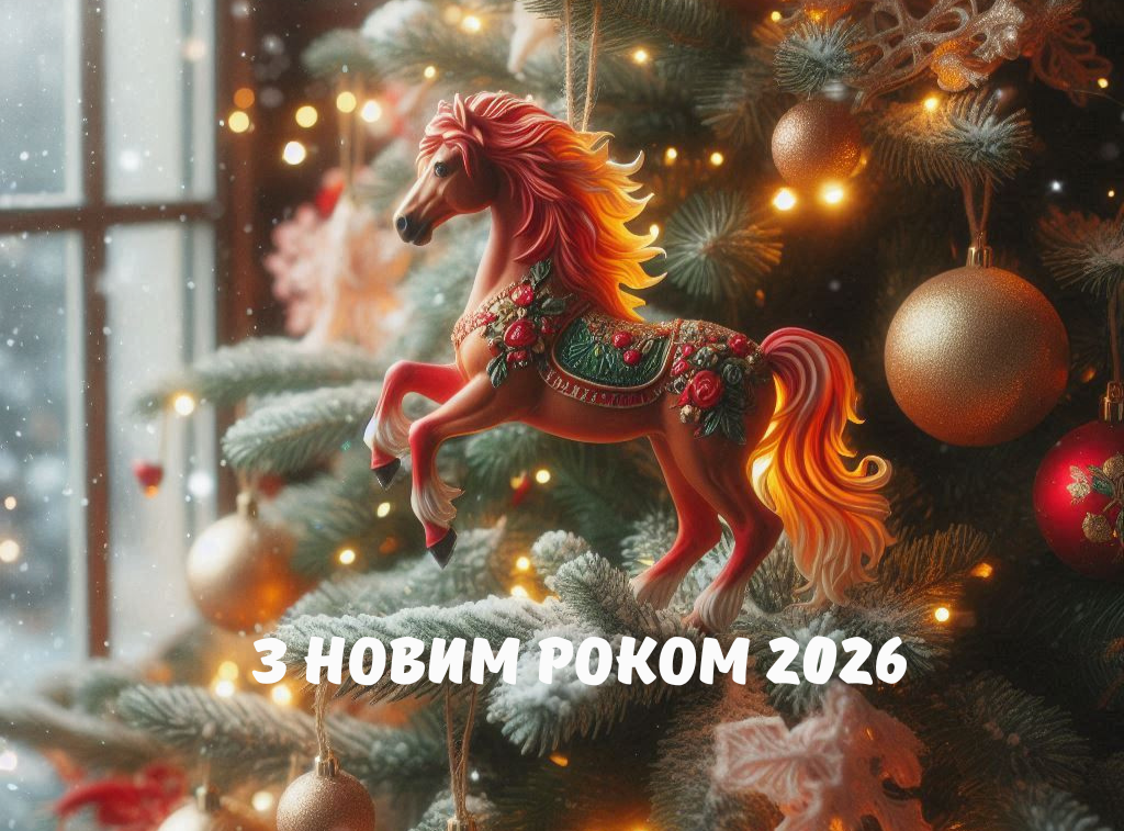 З прийдешнім Новим 2026 роком, друзі! Нехай Кінь віджене всі негаразди й сповнить ваш дім казковим настроєм! Хай новий рік принесе радість, сміх, гарний настрій, тепло домашнього вогнища й успіх в усіх ділах! Бажаю виконання найпотаємніших бажань!