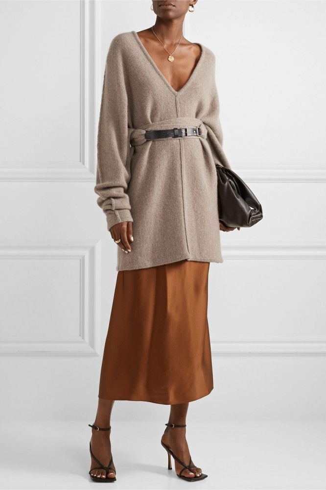 Ідеальний варіант для домашньої урочистості чи заміського відпочинку. Шовкова спідниця у золотистому або теракотовому кольорі у поєднанні з якісним кашеміровим светром створить затишний, але при цьому вишуканий образ у стилі "тихої розкоші".