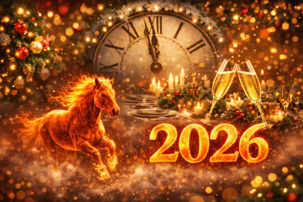 Символом Нового 2026 року стане Червоний Вогняний Кінь, який несе енергію змін, сили та оновлення. Він вже стрімко мчить до нас, а отже, саме час підготувати для близьких та друзів теплі та кумедні побажання зі святом.