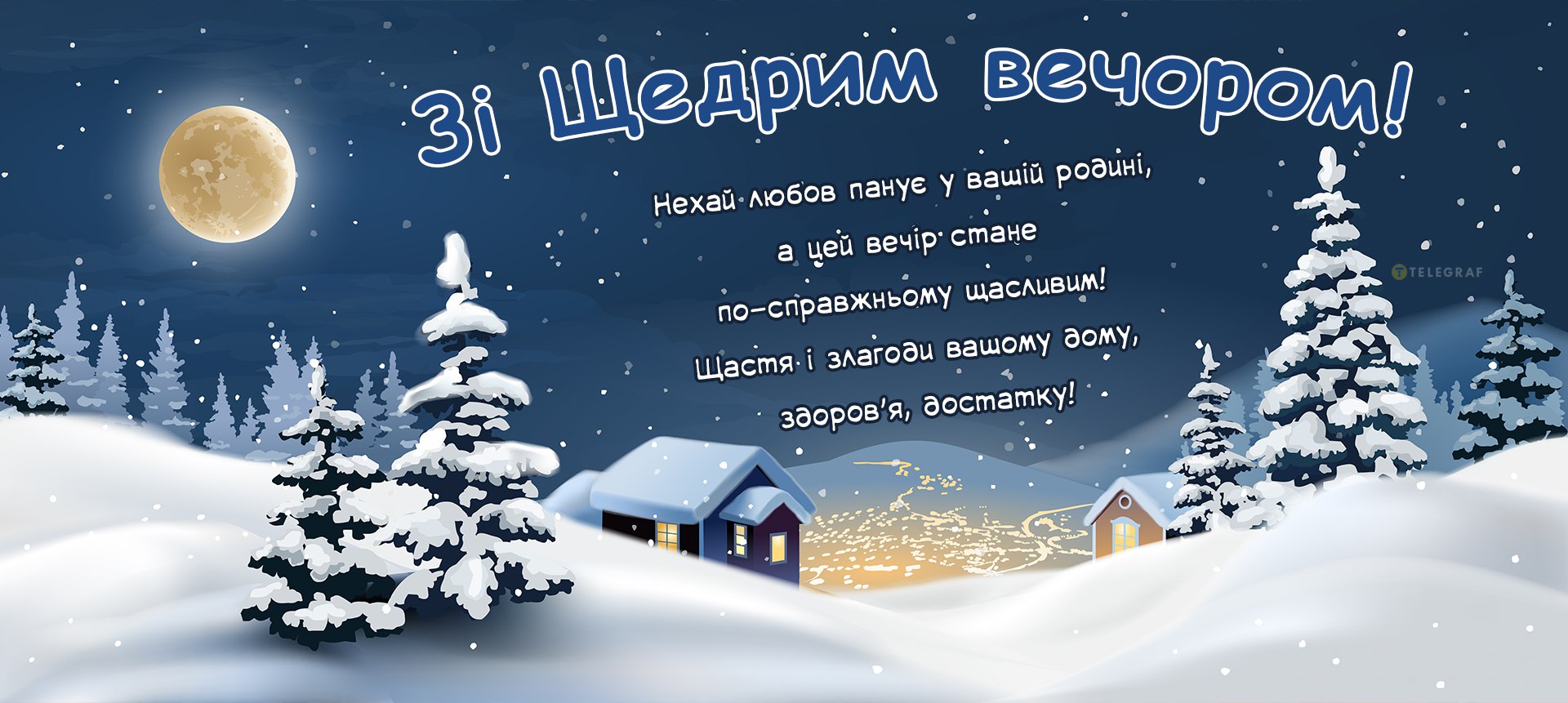 Вітаю зі святим Щедрим вечором! Хай Божа ласка осяює ваш життєвий шлях, а віра дає снагу долати всі труднощі. Нехай у вашій оселі панує мир!
