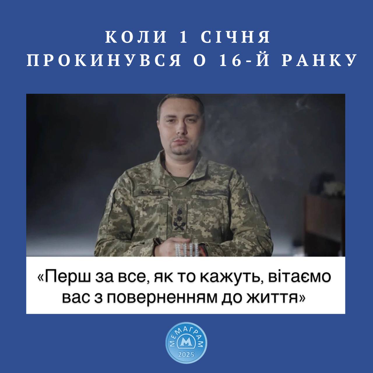 На багатьох мемах сам Капустін взагалі був відсутній, обігрували саму ситуацію за участю Буданова. На одному із зображень написано: "Коли 1 січня прокинувся о 16 ранку". Потім глава ГУР каже: "Насамперед, як кажуть, вітаємо вас із поверненням до життя".