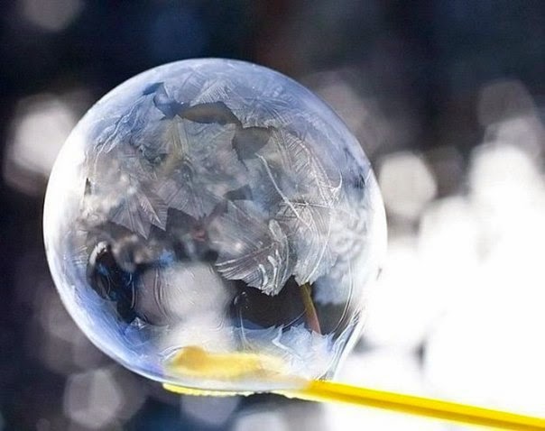Заморожена мильна бульбашка покривається тоненькою плівкою, немов яєчною шкаралупою. Якщо на поверхню бульбашки падає сніжинка, вона перетворюється на тонку плівку льоду, повторюючи свій візерунок. Заморожені мильні бульбашки виглядають казково.