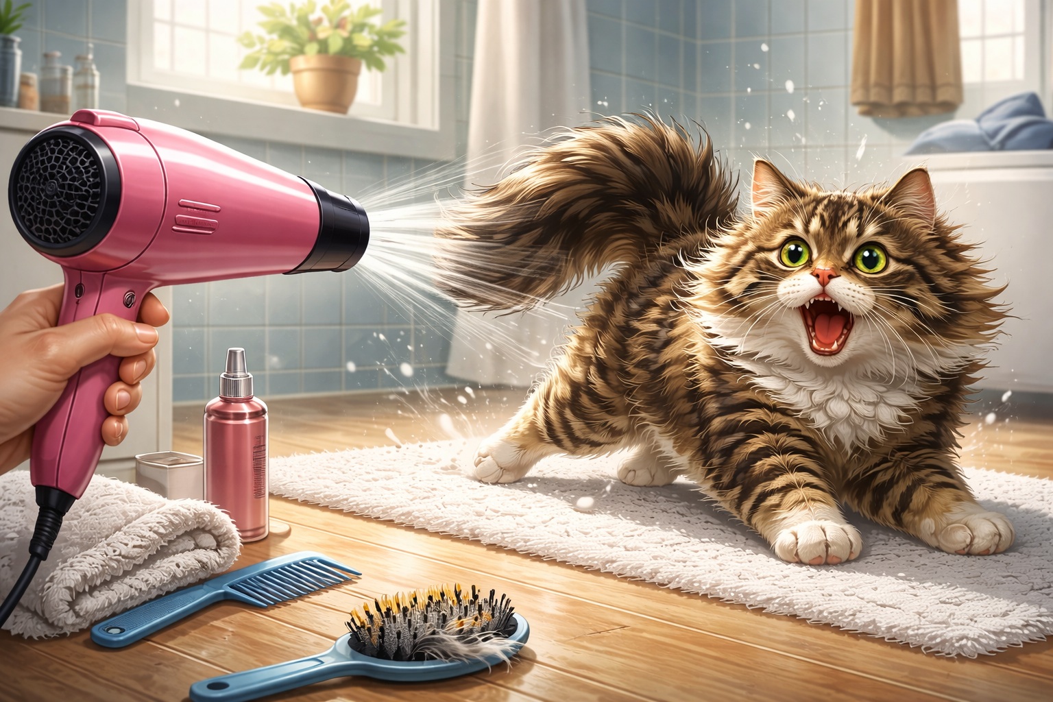 Якщо говорити про фен, то для кота цей прилад максимально страшний і непередбачуваний через потоки повітря. У котячому світі різкий видих повітря в обличчя — це сигнал агресії (шипіння). Коли фен дме на кішку, вона сприймає це як прямий напад великого хижака.