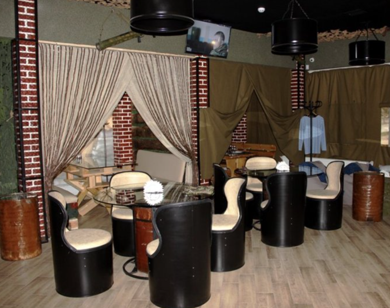Інтер'єр кафе був виконаний у військовому стилі, там навіть офіціанти ходили у формі. Щоправда, як видно на фото, чимало елементів декору дешевили заклад та перетворювали його на забігайлівку. Однак меню та ціни у "Сепарі" були не низькими, не кожен місцевий міг собі дозволити поїсти на 400-1000 рублів.