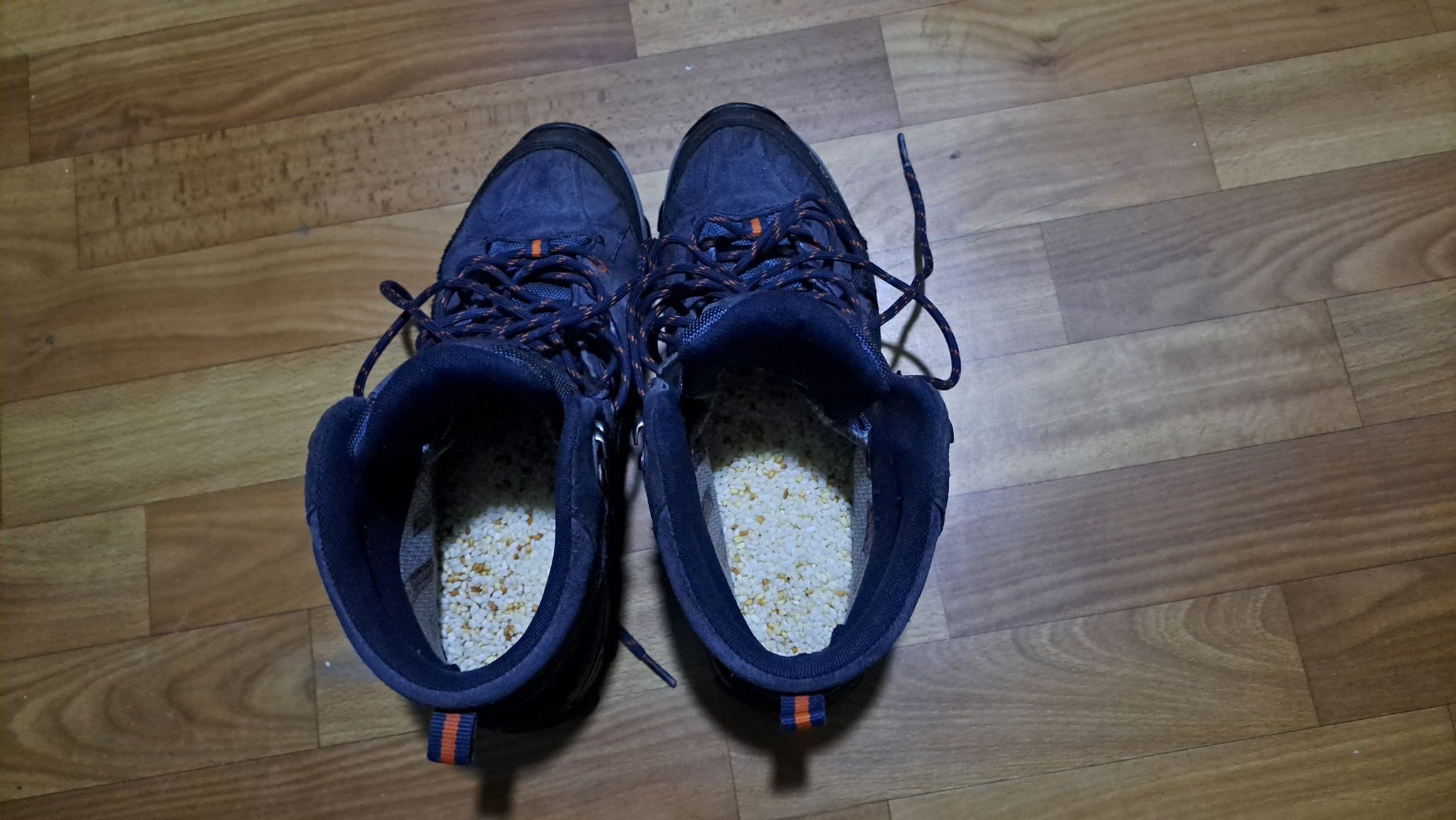 Саме тому жінка використала рис. Вона просто засипала рисову крупу у взуття, яке попередньо добре розкрила та розшнурувала. Попередньо рис краще нагріти. Тут на допомогу прийде газова плита чи туристичний пальник. При цьому рис можна кілька разів діставати зі взуття, сушити на вогні та знову засипати.