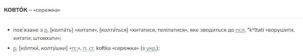 Також в Україні цю прикрасу називають "ковтки". Цей варіант походить від праслов’янського kъltati, що означає "ворушити, хитати, штовхати", і ймовірно, навіяно коливанням сережок-підвісок під час руху.