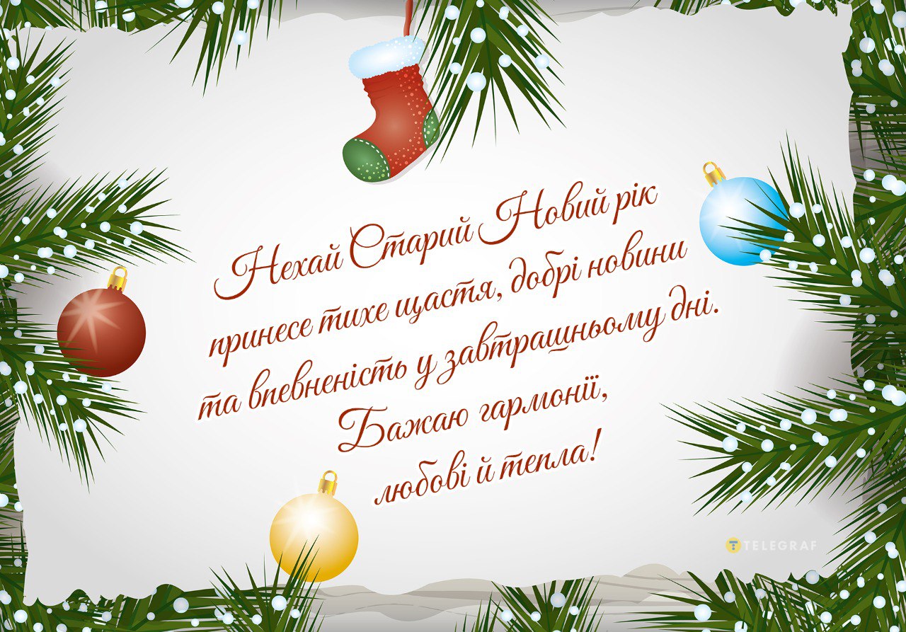 Нехай це світле свято принесе у ваш будинок все те, про що ви мрієте! Старий Новий рік – свято, коли потрібно залишити позаду все погане і відкрити серце для нових і світлих змін. Щиро і від щирого серця бажаю процвітання, кохання і більше радості.