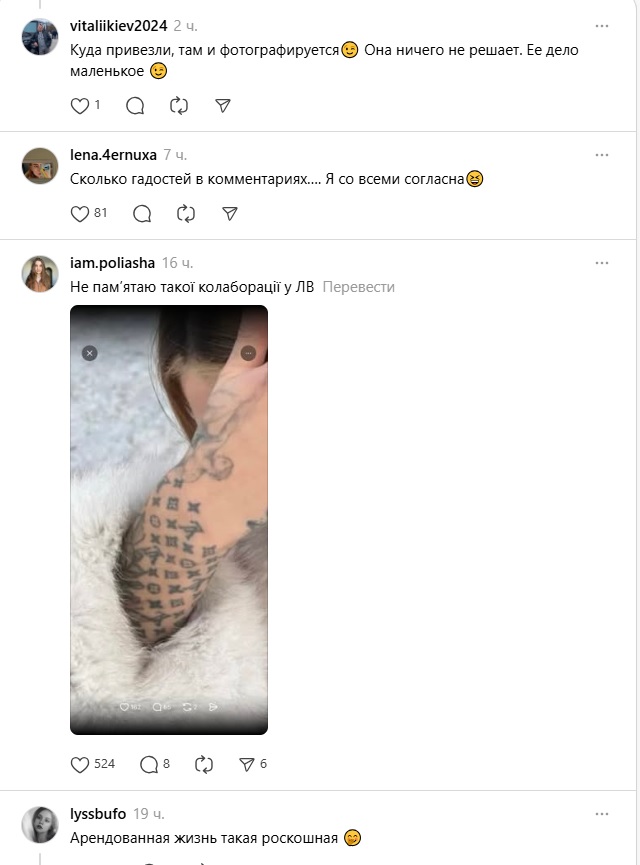 Коментарі під постом Семенової