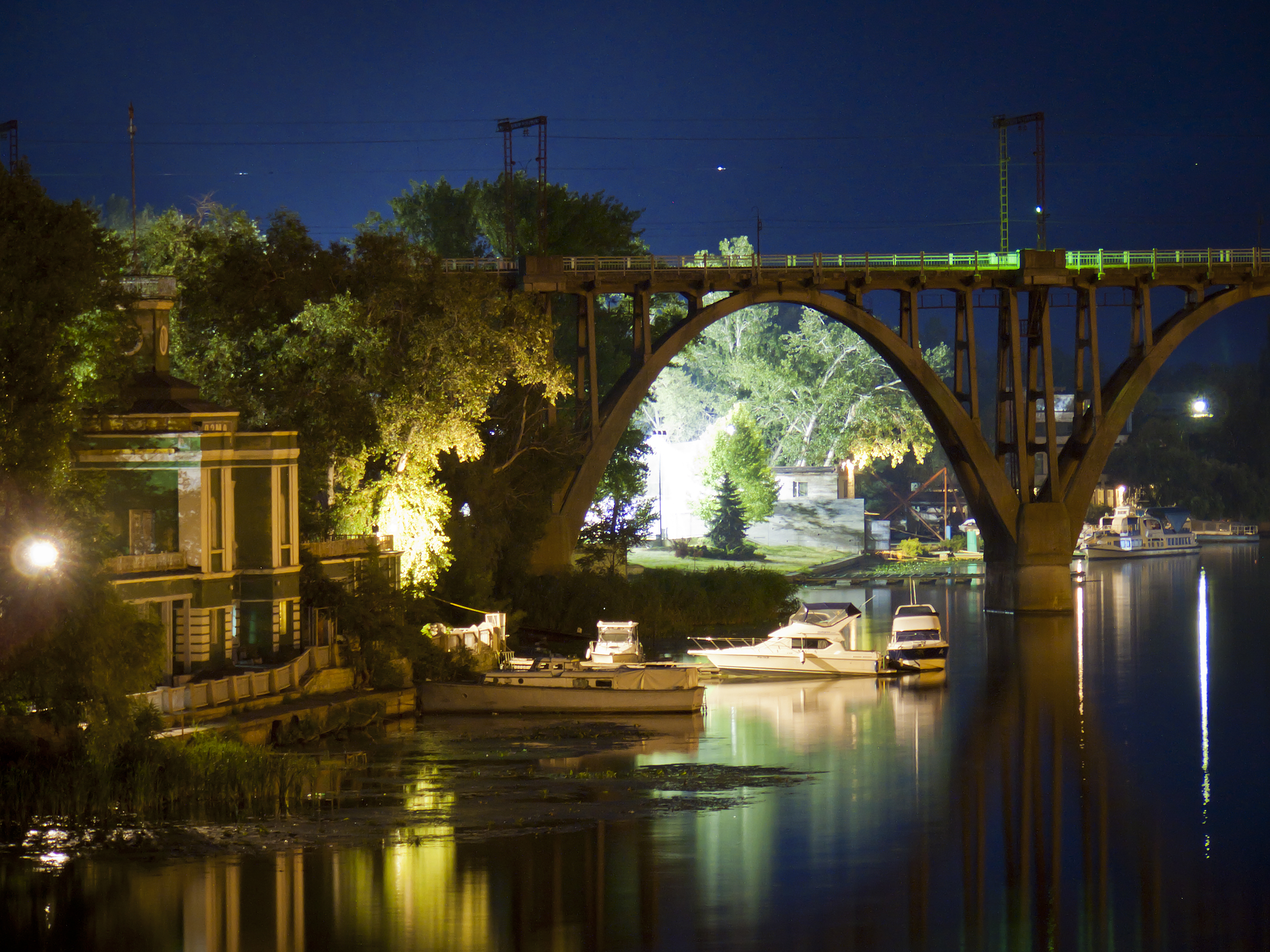 Мерефо-Херсонський міст вночі. Фото Вікіпедія