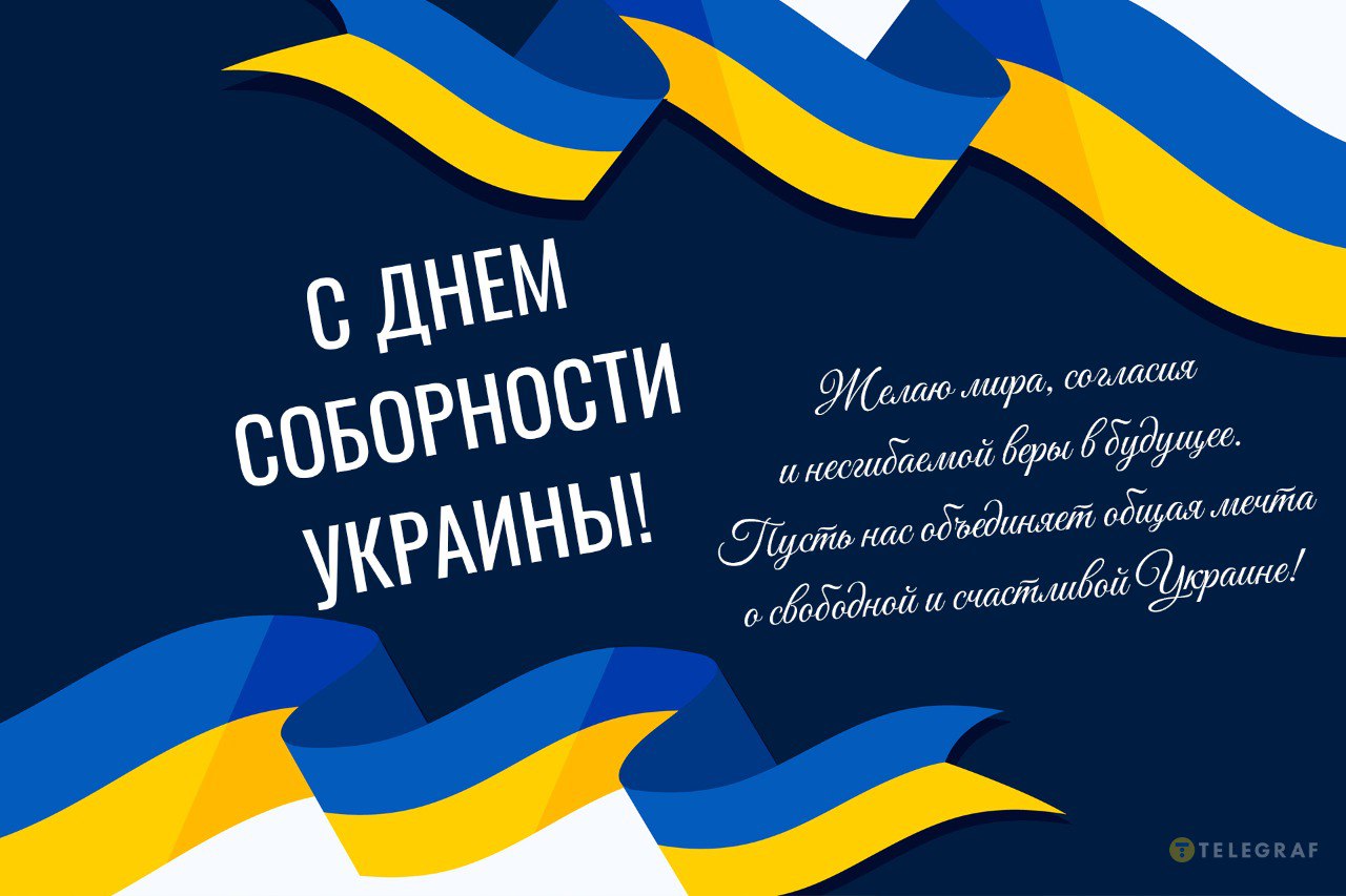 З Днем Соборності! Нехай це свято об’єднує нас навколо спільної мрії про вільну та сильну Україну. Бажаю кожному миру, впевненості у завтрашньому дні та гордості за свій народ. Ми єдині!