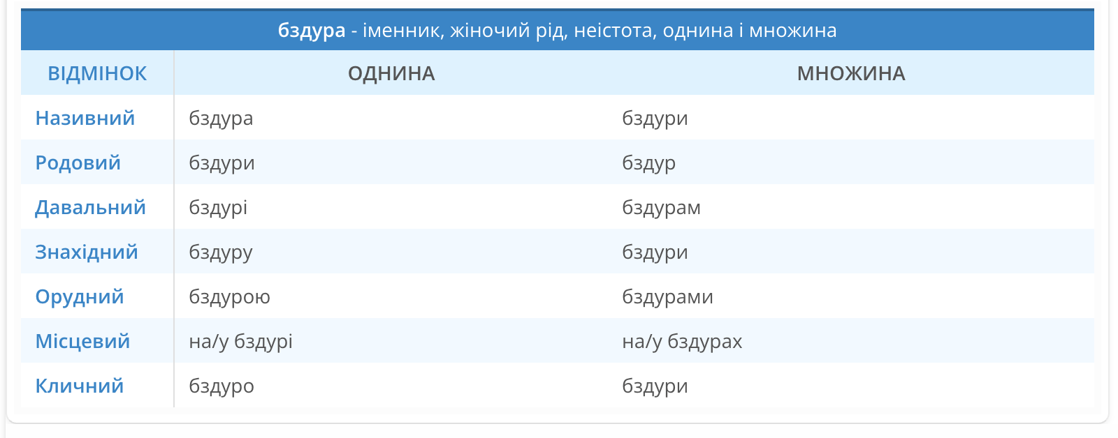 Зауважимо, що слово "бздура" має жіночий рід та відміняється за усіма відмінками у формі множини та однини.