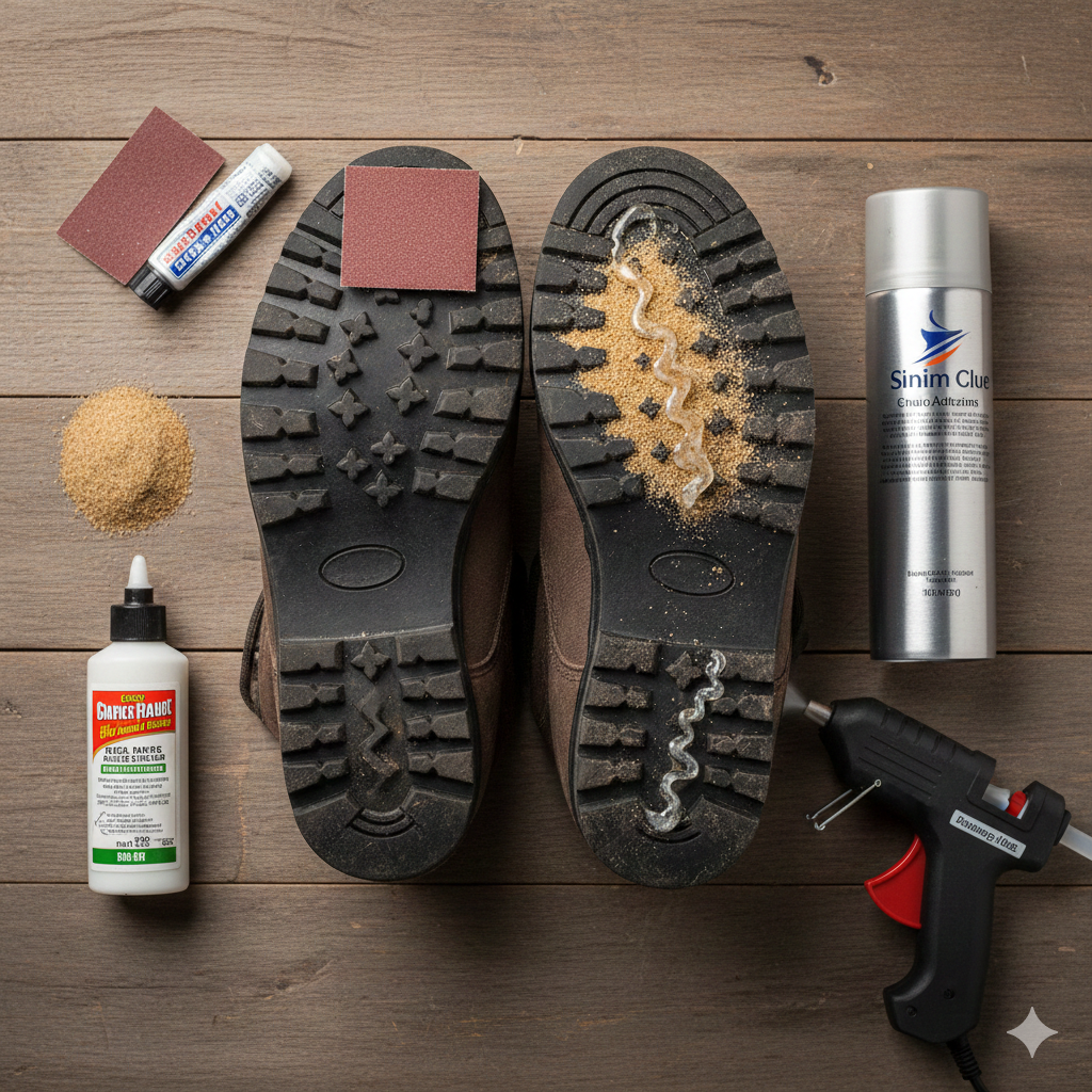 Нанесіть на підошву черевиків "змійкою" шар суперклею або клею для взуття і відразу ж посипте це місце великим піском. Коли клей висохне, а пісок у ньому застигне, вийде ефект "наждачки", який припинить ковзання. Ефект триматиметься до двох тижнів, потім можна повторити фокус із клеєм та піском.