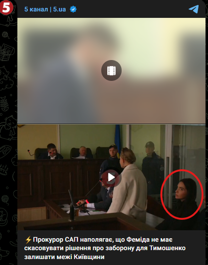 Цікаво, що кадр із засідання спочатку був опублікований у Телеграм-каналі "5 каналу", з повідомленням: "На суд щодо справи Юлії Тимошенко приїхала й донька політикині, яка мешкає в Дубаї". Проте пізніше пост із невідомої причини було видалено.