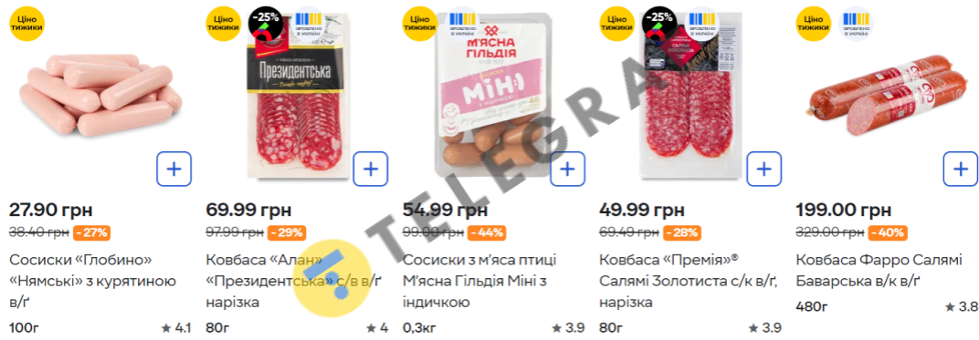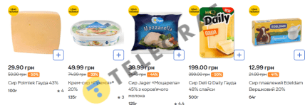 Найбільше зниження ціни отримали сири Гауда та фасовані слайси, а також сосиски з індичкою. У частині випадків різниця між старою та новою ціною становить понад 100 гривень.