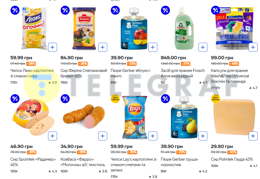 Супермаркет "Сільпо" проводить знижки на низку популярних товарів. Покупцям пропонують знижки до 50% на популярні продукти харчування та товари для дому — від чіпсів та сирів до дитячого харчування та засобів для прання.