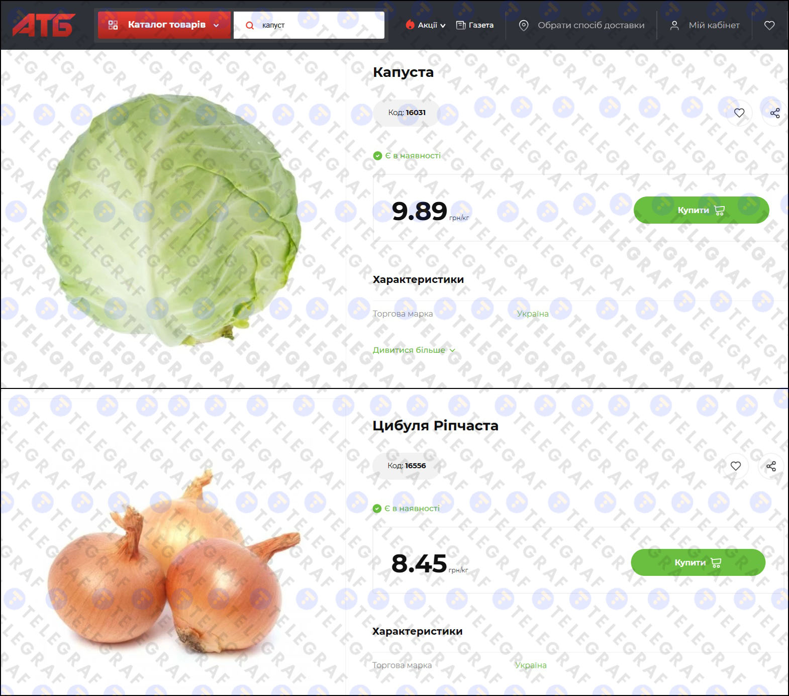 Ціни капуста цибуля Україна 2026