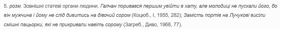 У Словнику української мови зазначається, що слово "сором" має кілька значень: