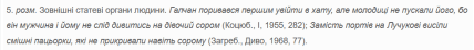 "Галчан поривався першим увійти в хату, але молодиці не пускали його, бо він мужчина і йому не слід дивитись на дівочий сором", — писав Михайло Коцюбинський.