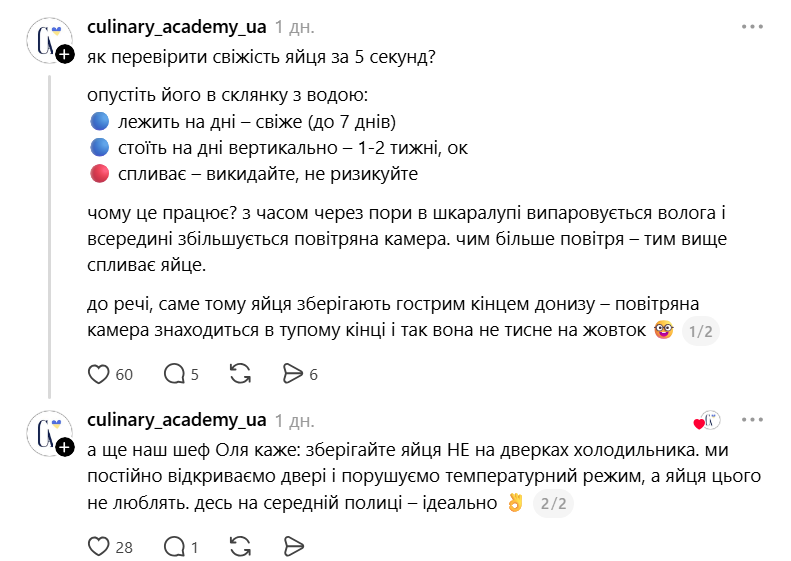 Втім, існує швидкий і доступний спосіб перевірити його свіжість буквально за кілька секунд — і для цього не потрібні жодні спеціальні прилади. Про це йдеться на threads-сторінці "culinary_academy_ua".