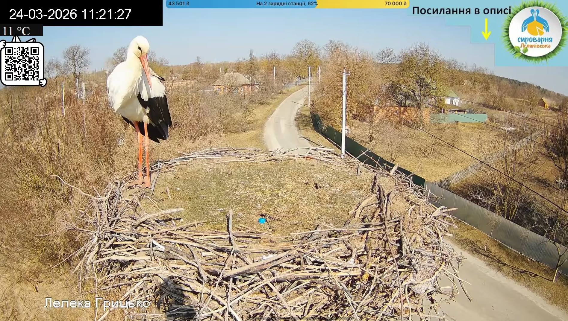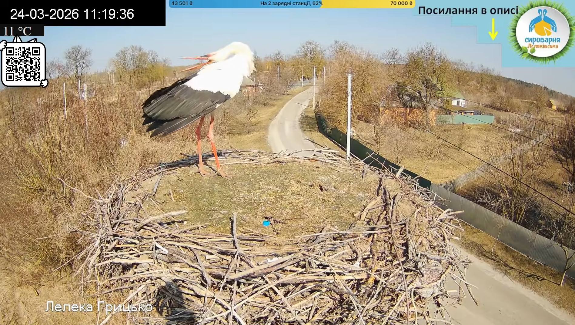 Українці чекають на повернення зіркових лелек — Грицика та Одарки. У вівторок, 24 березня у їх гніздо прилетів лелека, можливо це Грицик, або Одарка.