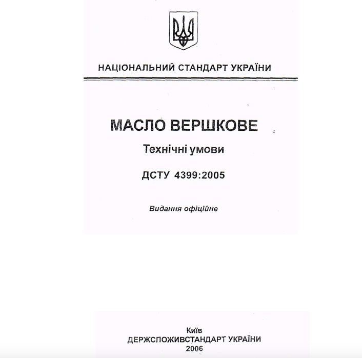 Натуральне масло виготовляється за ДСТУ 4399:2005 — цей стандарт регламентує виробництво з молочного жиру. Якщо на упаковці вказано номер 4445:2005, це означає спред або жирову суміш.