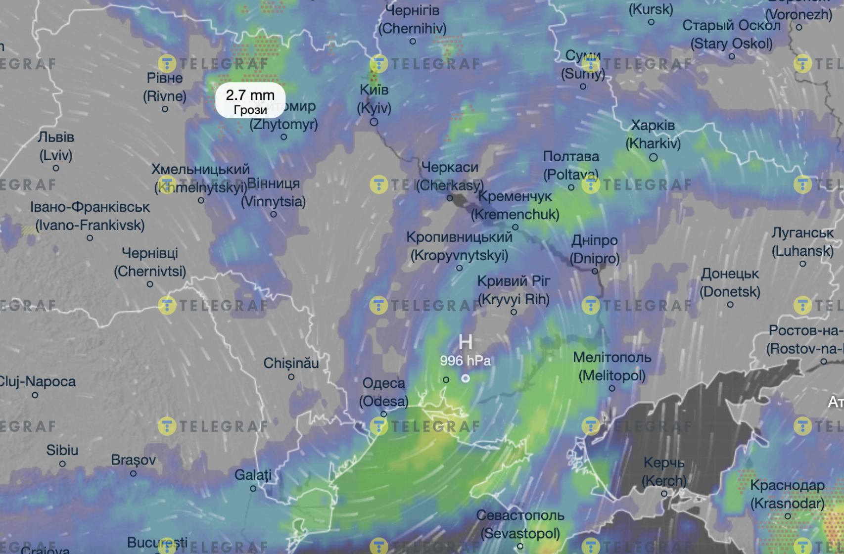 Протягом 3 квітня, попри досить теплу погоду до +14 градусів, майже всю Україну накриватиме сильна злива подекуди з грозами. Опади оминуть лише західні області.
