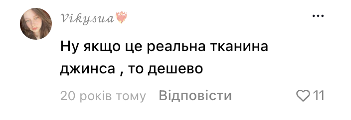 - Ну якщо це реальна тканина джинса, то дешево.