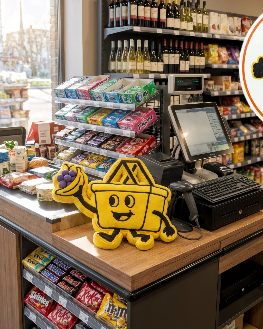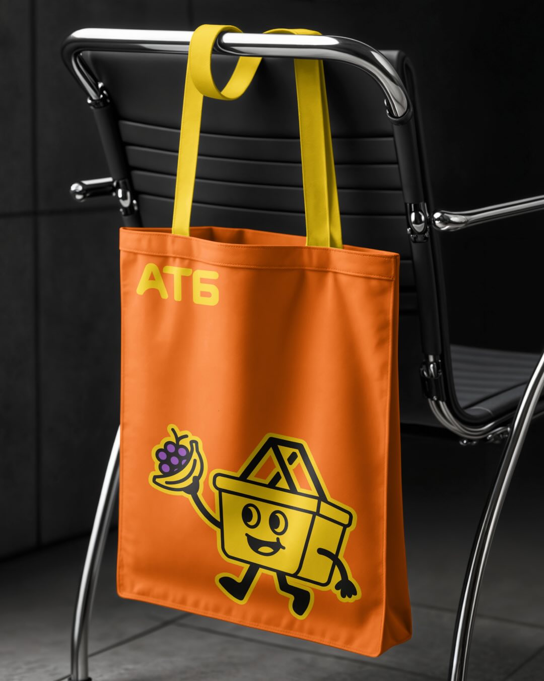 Головним героєм став жовтий кошик із привітним обличчям та тонкими чорними ручками й ніжками. Також дизайнер розробив фірмовий шопер: яскраво-помаранчеву сумку з жовтими ручками, прикрашену великим зображенням цього персонажа.