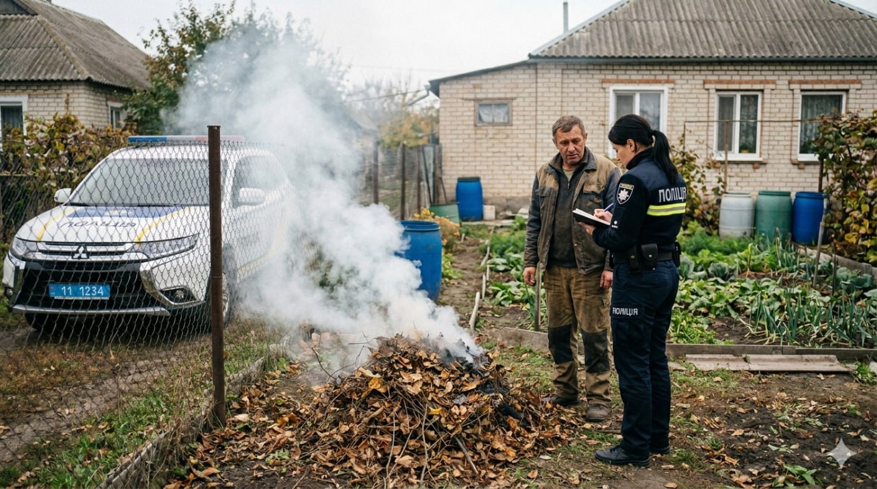 За спалювання листя, трави та інших рослинних залишків передбачено адміністративну відповідальність: